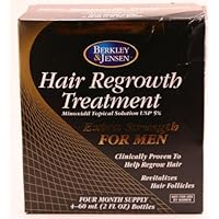 I have recently purchased Berkley & Jensen hair regrowth treatment, and my wife couldn't believe how well it was working for me. I sense have used my suppply up for 4 months and will be in the process to order more online. Thankyou for making this product work.Berkley & Jensen hair regrowth treatment minoxidil topical solution USP 5% extra strength for men (4 month supply 4 bottles of 60 ml each - total 2 fl oz) Overview